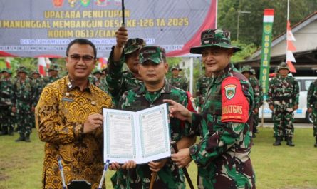 Ciamis – Babinsa Desa Dadiharja Koramil 1310/Rancah Kodim 0613/Ciamis, bersama warga masyarakat melaksanakan kegiatan gotong royong pengecoran jalan baru menuju kawasan Wisata Puncak Bakom, Desa Dadiharja, Kecamatan Rancah, Kabupaten Ciamis, Sabtu (8/11/2025).