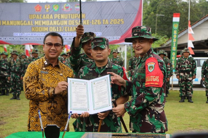 Ciamis – Gelaran Tentara Manunggal Membangun Desa (TMMD) ke-126 Tahun 2025 yang dilaksanakan oleh Kodim 0613/Ciamis di Desa Sukamulya Kecamatan Purwadadi Kabupaten Ciamis secara resmi telah ditutup, Kamis (6/11/2025).
