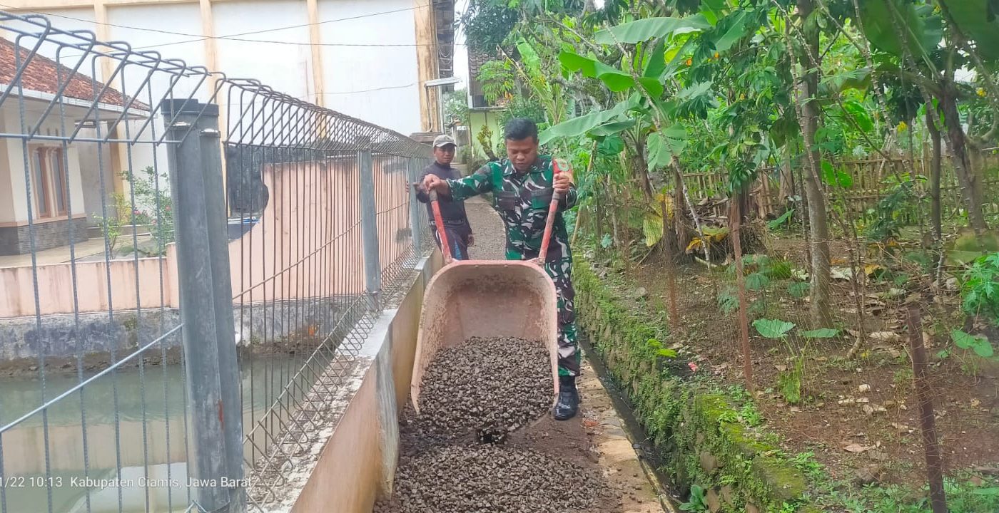 Ciamis – Dalam upaya meningkatkan kenyamanan dan keselamatan akses jalan bagi masyarakat, Babinsa Desa Sukahurip Koramil 1306/Panjalu, Serda Heru Hermawan, turut serta membantu warga binaan dalam kegiatan perbaikan jalan gang  di dusun Sukajaya Desa Sukahurip kecamatan Cihaurbeuti, Selasa (2/12/2025).